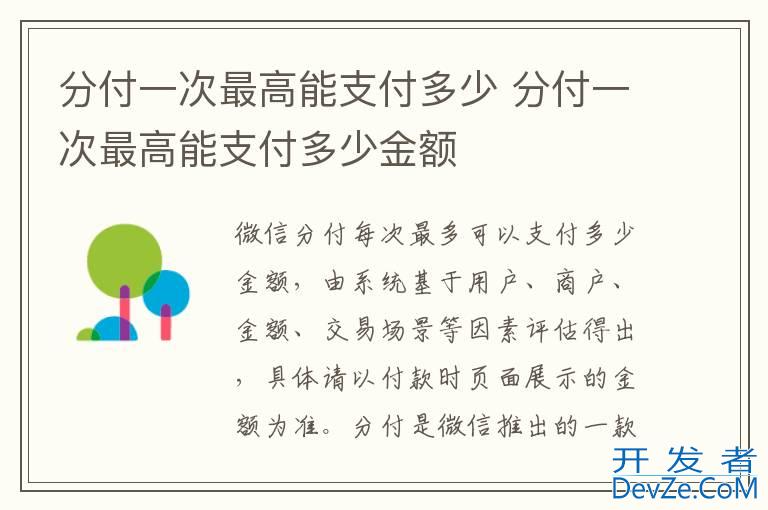 品牌型号:iPhone13 pro pro 系统:iOS 15.6 软件版本:微信8.0.26微信分付每次最多可以支付多少金额,由系统基于用户、商户、金额、交易场景等因素评估得出,具体请以付款时页面展