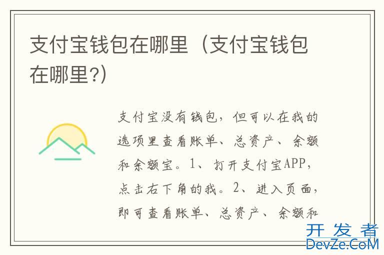 品牌型号:iPhone13 pro 系统:IOS15.4.1 软件版本:支付宝10.2.60以支付宝10.2.60为例,支付宝没有钱包,但可以在我的选项里查看账单、总资产、余额和余额宝。分为2步,具体