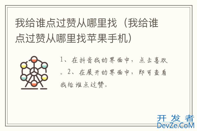 品牌型号:华为p40 系统:HarmonyOS 2.0.0 软件版本:抖音19.4.0我给谁点过赞可以在抖音喜欢中进行查看即可。以手机华为p40为例,查看我给谁点过赞的步骤分为2步,具体操作如下:1点