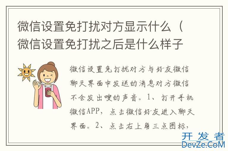微信设置了消息免打扰,好友是不会知道的。 该功能只是对自己微信里的消息提醒方式进行更改,对方仍然可以正常发送内容,所以不会开发者_Go百科知道。