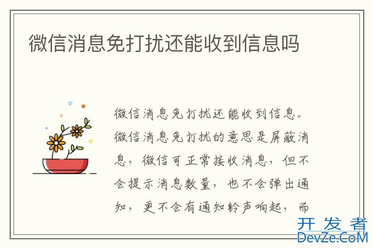 品牌型号:iPhone13 pro pro 系统:iOS 15.6.1 软件版本:微信8.0.26微信消息免打扰还能收到信息。微信消息免打扰的意思是“屏蔽消息”,微信可正常接收消息,但不会提示消息数量