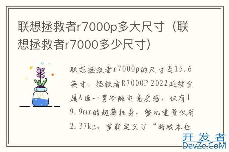 品牌型号:联想拯救者R7000P 系统:Windows 11联想拯救者r7000p的尺寸是15.6英寸。拯救者R7000P 2022延续金属A面一贯冷酷电竞质感,仅有19.9mm的超薄机身,整机重量仅