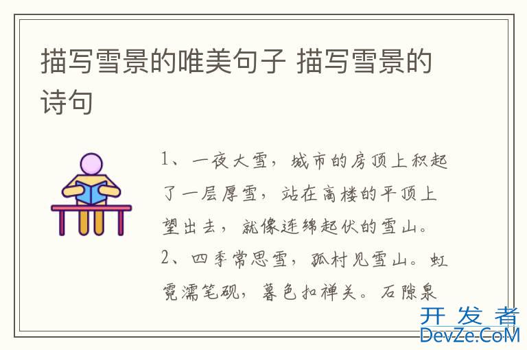 1、一夜大雪,城市的房顶上积起了一层厚雪,站在高楼的平顶上望出去,就像连绵起伏的雪山。2、四季常思雪,孤村见雪山。虹霓濡笔砚,暮色扣禅关。石隙泉飞泻,林丛鸟哕环。巅峰寻雅趣,何惧步维艰。3、雪,盖满了