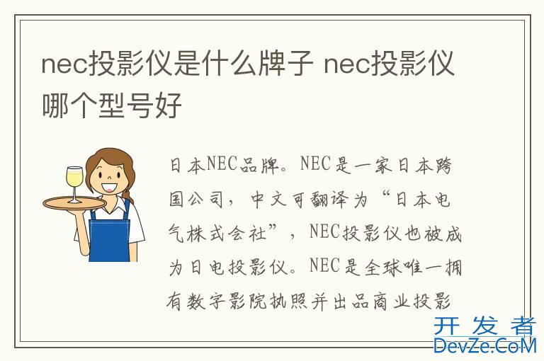 品牌型号:NEC投影仪 系统:NP-CD2310Xnec投影仪是日本NEC品牌。NEC是一家日本跨国公司,中文可翻译为“日本电气株式会社”,NEC投影仪也被成为日电投影仪。NEC是全球唯一拥有数字影院