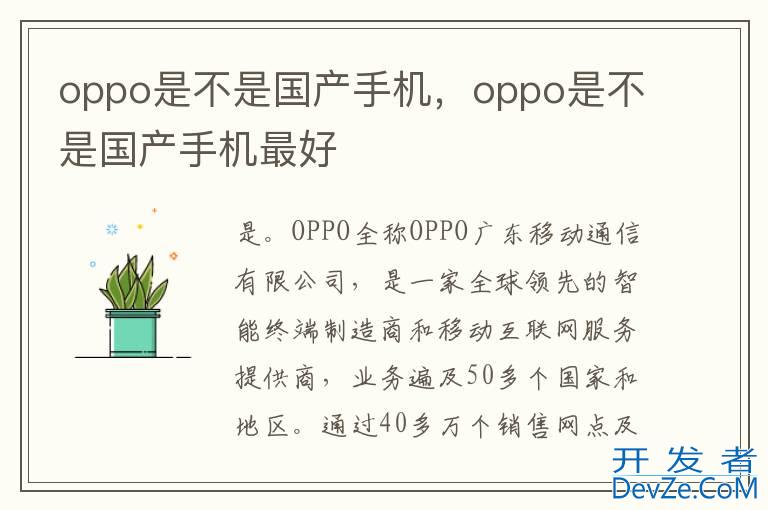 品牌型号:OPPO K10 系统:ColorOS 12.1oppo是国产手机。OPPO全称OPPO广东移动通信有限公司,由陈明永先生等人于2004年创立,是一家全球领先的智能终端制造商和移动互联网服务