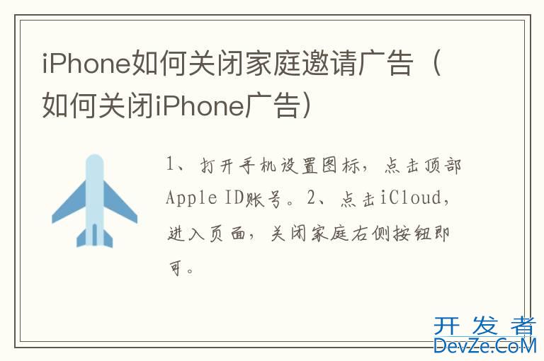 品牌型号:iPhone13 pro 系统:IOS15.4.1以iPhone13 pro为例,iPhone关闭家庭邀请广告可以进入iCloud关闭。分为2步,具体步骤如下:1进入设置AppleID账号打