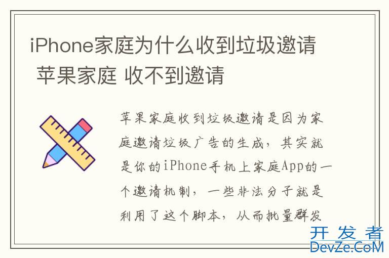 品牌型号:iPhone13 pro pro 系统:IOS15.4iPhone家庭收到开发者_运维知识库垃圾邀请是因为家庭邀请垃圾广告的生成,其实就是你的iPhone手机上家庭App的一个邀请机制,打开