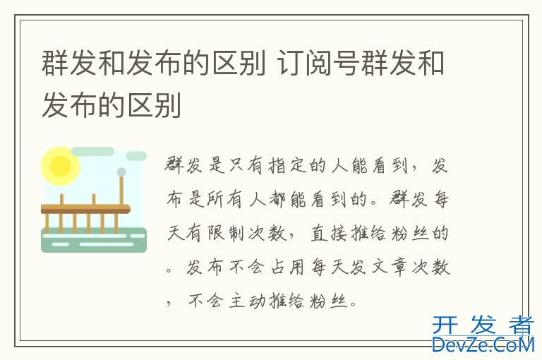 品牌型号:iPhone13 pro 系统:IOS15.4 软件版本:微信8.0.18群发是只有指定的人能看到,发布是所有人都能看到的。群发每天有限制次数,直接推给粉丝的。发布不会占用每天发文章次数,不