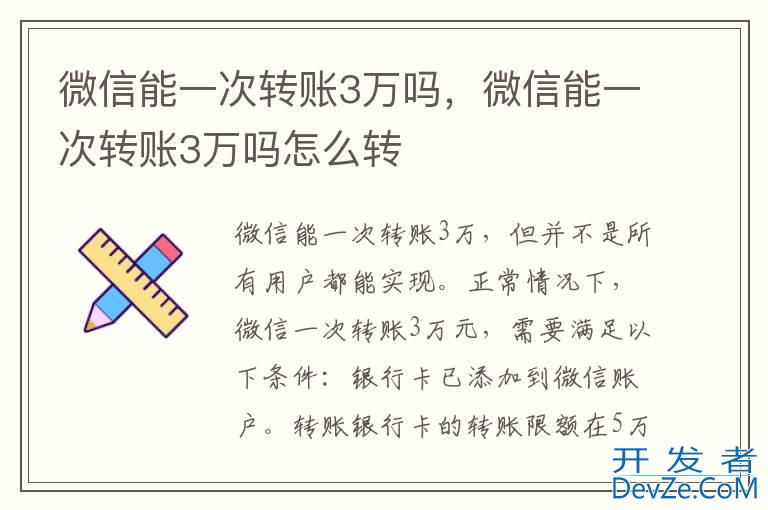 品牌型号:iPhone13 pro pro 系统:iOS 16.0 软件版本:微信8.0.28微信能一次转账3万,但并不是所有用户都能实现。正常情况下,微信一次转账3万开发者_运维知识库元,需要满足以