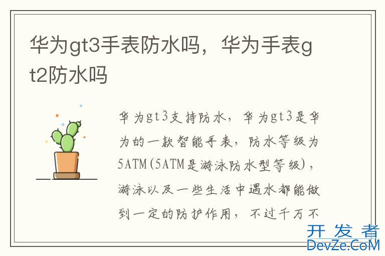 品牌型号:华为gt3 系统:HarmonyOS华为gt3支持防水,华为gt3是华为的一款智能手表,防水等级为5ATM(5ATM是游泳防水型等级),游泳以及一些生活中遇水都能做到一定的防护作用,不过千万