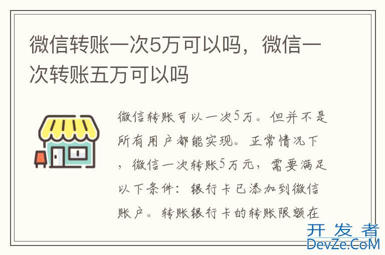 品牌型号:iPhone13 pro pro 系统:iOS 15.6.1 软件版本:微信8.0.26微信转账可以一次5万。但并不是所有用户都能实现。正常情况下,微信一次转账5万元,需要满足以下条件:银行