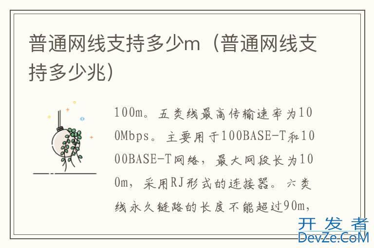 品牌型号:安帝网线 系统:AD-5050G普通网线支持100m。五类线最高传输速率为100Mbps。主要用于100BASE-T和1000BASE-T网络,最大网段长为100m,采用RJ形式的连接器。六