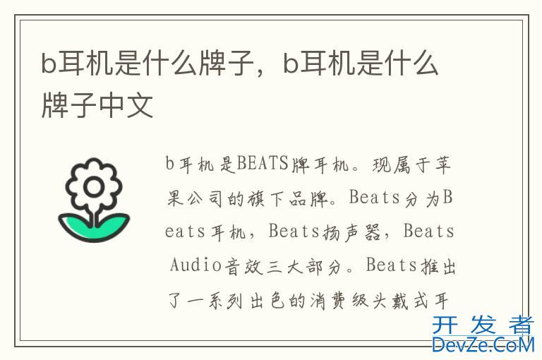 品牌型号:Beats耳机 系统:Beats Fit Pro开发者_开发问答 b耳机是BEATS牌耳机。现属于iPhone公司的旗下品牌。Beats分为Beats