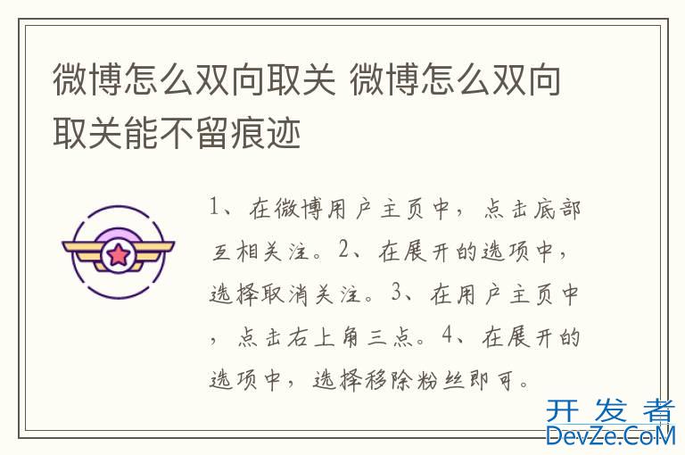 品牌型号:华为p40 系统:HarmonyOS 2.0.0 软件版本:微博 12.3.3微博双向取关需要在用户主页中,取消关注并移除粉丝即可。以手机华为p40为例,微博双向取关的步骤分为4步,具体操