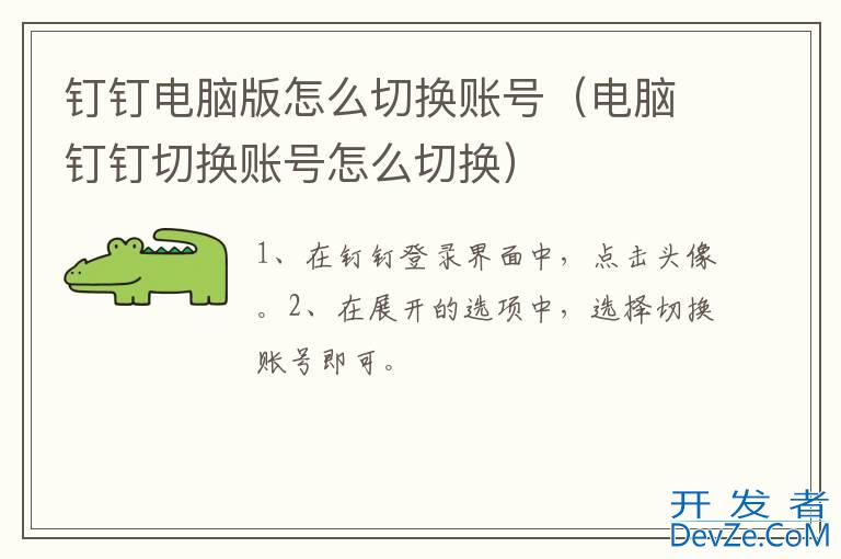 品牌型号:联想Geek Pro 系统:Windows 11 软件版本:钉钉 6.5.0钉钉电脑版切换账号需要在电脑钉钉中,点击头像并选择切换账号即可。以电脑联想Geek Pro为例,钉钉电脑版切换账号