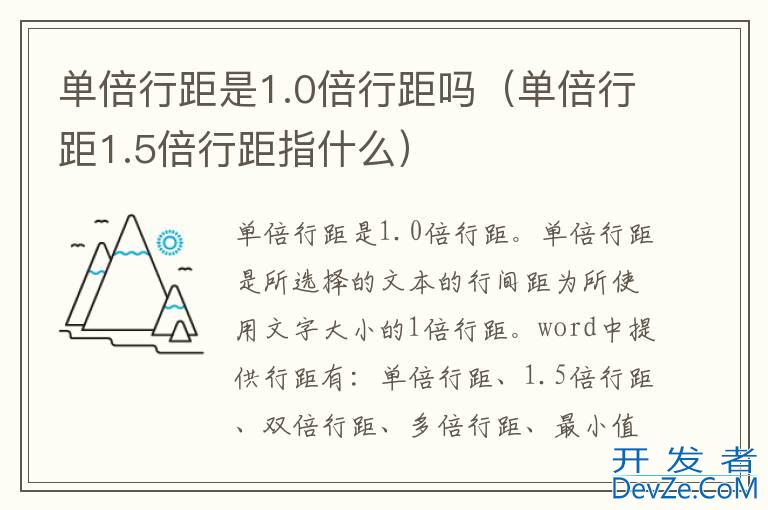 品牌型号:lenovo ThinkPad X250 系统:Windows 11 软件版本:word2021开发者_高级运维 单倍行距是1.0倍行距。单倍行距是所选择的文本的行间距为所使