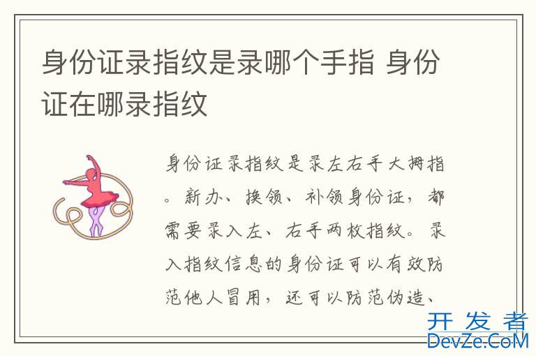 品牌型号:lenovo ThinkPad X250 系统:Windows 11开发者_开发技巧 身份证录指纹是录左右手大拇指。新办、换领、补领身份证,都需要录入左、右