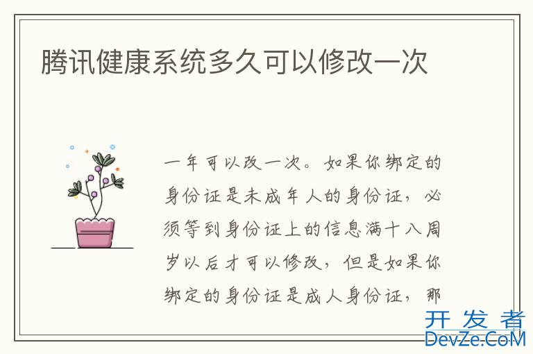 品牌型号:iPhone13 pro pro 系统:iOS 16.0 软件版本:QQ8.9.10腾讯健康系统实名认证一年可以改一次。但是前提是,你必须是成人身份证,如果你绑定的身份证是未成年人的身份证,
