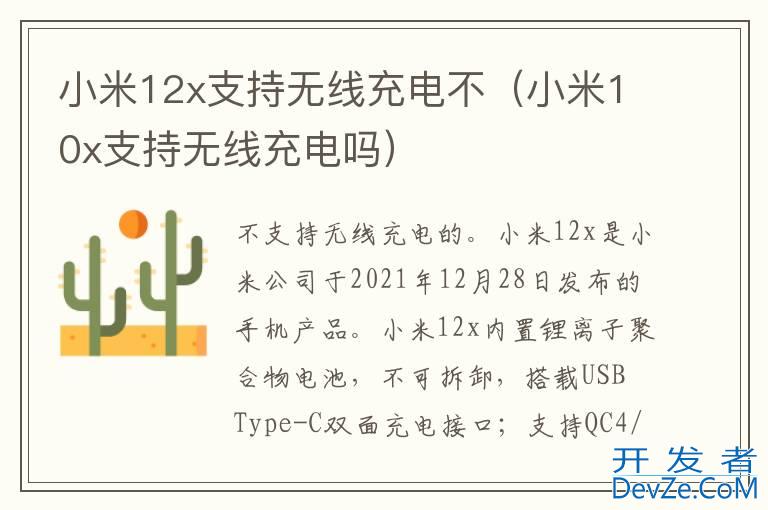 品牌型号:Xiaomi 12X 系统:MIUI 13小开发者_Go百科米12x是不支持无线充电的。小米12x是小米公司于2021年12月28日发布的手机产品。小米12x内置锂离子聚合物电池,不可拆卸,