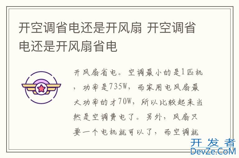 品牌型号:美的空调 系统:KFR-35GW开风扇省电。因为空调比电风扇的功率更大,所以耗电量要更大。空调最小的是1匹机,功率是735W,也就是每小时最大耗电量是0.73度,而家用电风扇最大功率的才70