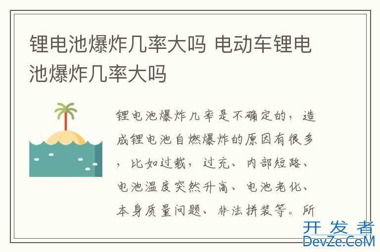 品牌型号:博邦锂电池 系统:60V25Ah开发者_开发知识库 锂电池爆炸几率是不确定的,造成锂电池自燃爆炸的原因有很多,比如过载,过充、内部短路、电池温度突然升高