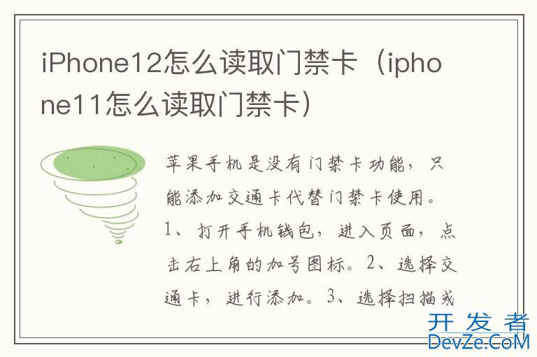 品牌型号:iPhone12 pro 系统:IOS15.4以iPhone12 pro为例,iPhone手机是没有门禁卡功能,只能添加交通卡代替门禁卡使用。分为3步,具体步骤如下:1进入钱包添加开发者_如