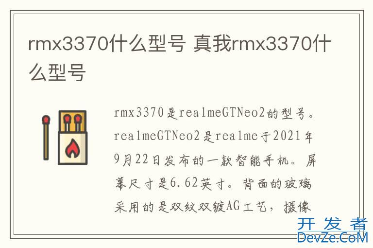 品牌型号:realmeGTNeo2 系统:realmeUI2.0开发者_运维技巧 rmx3370是realmeGTNeo2的型号。realmeGTNeo2