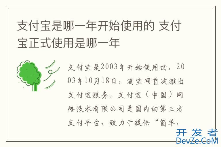品牌型号:华为P50 系统:HarmonyOS3 软件版本:支付宝10.2.60.8000支付宝是2003年开始使用的。2003年10月18日,淘宝网首次推出开发者_运维知识库支付宝服务。支付宝(中国