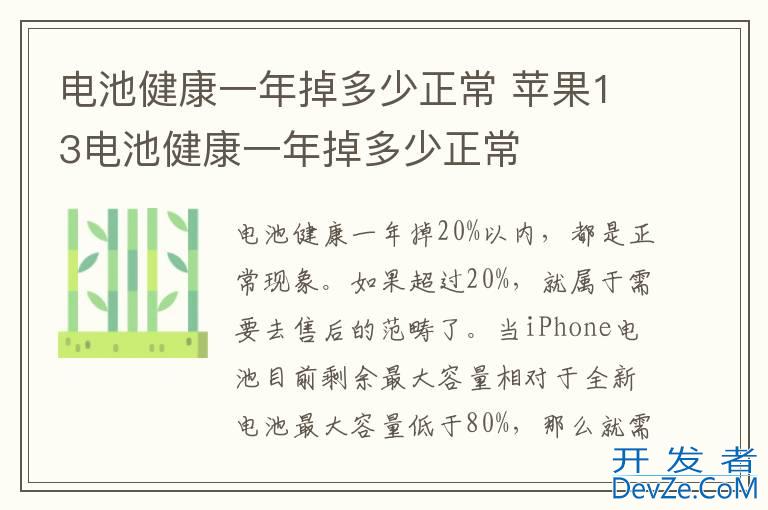 品牌型号:iPhone13 pro pro 系统:IOS15.4电池健康一年掉20%以内,都是正常现象。如果超过20%,就属于需要去售后的范畴了。当iPhone电池目前剩余最大容量相对于全新电池最大容
