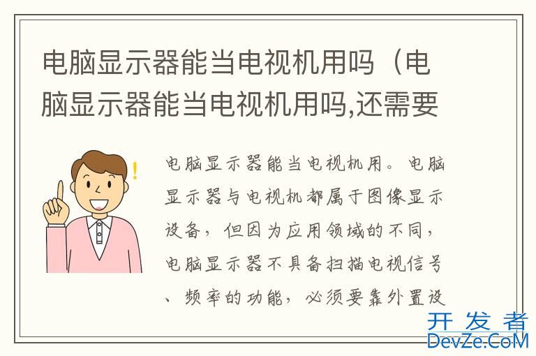 品牌型号:方正电脑显示器 系统:27ER8R3P开发者_StackOverflow 电脑显示器能当电视机用。电脑显示器与电视机都属于图像显示设备,但因为应用领域的不