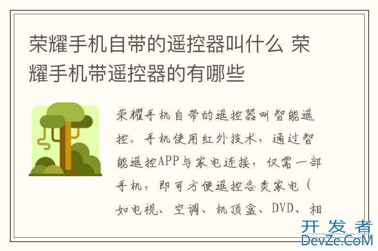 品牌型号:荣耀30pro+ 系统:Magic UI 3.1荣耀手机自带的遥控器叫智能遥控。手机使用红外技术,通过智能遥控APP与家电连接,仅需一部手机,即可方便遥控各类家电(如电视、空调、机顶盒、DV