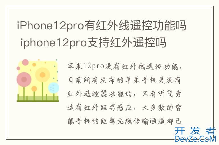 品牌型号:iPhone 12 pro Pro 系统:iOS 16.0iPhone12pro没有红外线遥控功能。目前所有发布的i开发者_Python百科Phone手机是没有红外遥控器功能的,只有听筒旁边