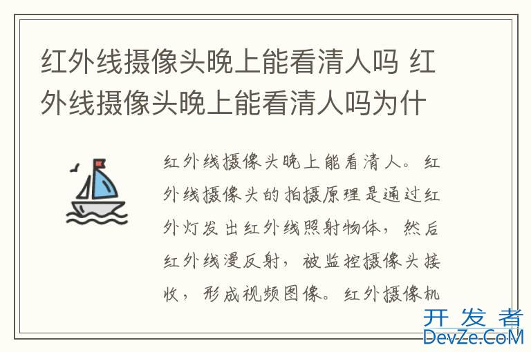 品牌型号:华为智选小豚监控摄像头 系统:至尊版红外线摄像头晚上能看清人。红外线摄像头的拍摄原理是通过红外灯发出红外线照射物体,然后红外线漫反射,被监控摄像头接收,形成视频图像。红外摄像机需要根据具体使