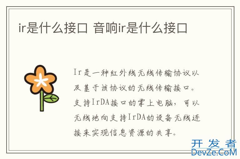 品牌型号:水木行Ir接口 系统:IR650Ir是一种红外线无线传输协议以及基于该协议的无线传输接口。支持IrDA接口的掌上电脑,可以无线地向支持开发者_开发技巧IrDA的设备无线连接来实现信息资源的共