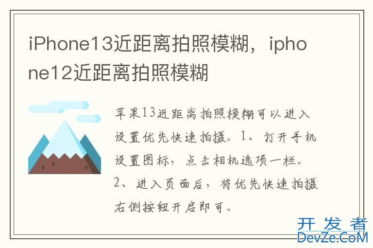 品牌型号:iPhone13 pro 系统:IOS15.4以iPhone13 pro为例,iPhone13近距离拍照模糊可以进入设置优先快速拍摄。分为2步,具体步骤如下:1进入设置相机打开手机设置图标,