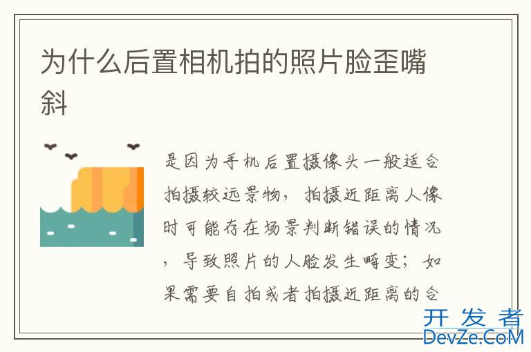品牌型号:华为P50 系统:HarmonyOS3后置相机拍的照片脸歪嘴斜是因为手机后置摄像头一般适合拍摄较远景物,拍摄近距开发者_运维问答离人像时可能存在场景判断错误的情况,导致照片的人脸发生畸变;如