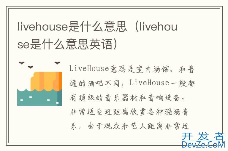 开发者_高级运维 LiveHouse意思是室内场馆。和普通的酒吧不同,LiveHouse一般都有顶级的音乐器材和音响设备,非常适合近距离欣赏各种现场音乐。由于观众和艺人距离非常近,因此