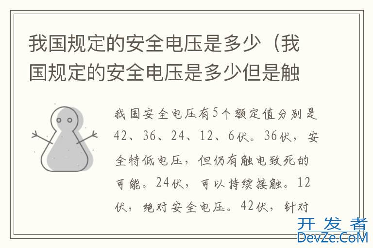 品牌型号:联想拯救者Y9000P 系统:Windows11我国安全电压有5个额定值分别是42、36、24、12、6伏。36伏,安全特低电压,但仍有触电致死的可能。24伏,可以持续接触。12伏,绝对安全