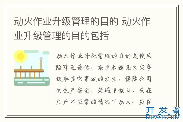 品牌型号:洪湖干粉灭火器 系统:MFZ/ABC4开发者_开发问答 动火作业升级管理的目的是使风险降至最低,减少和避免火灾事故和其它事故的发生,保障公司的生产安全。若遇节假