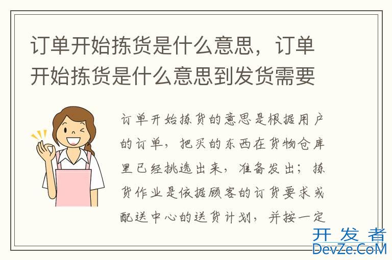 品牌型号:华为P50 系统:HarmonyOS3订单开始拣货的意思是根据用户的订单,把买的东西在货物仓库里已经挑选出来,准备发出;拣货作业是依据顾客的订货要求或配送中心的送货计划,尽可能迅速、准确地将