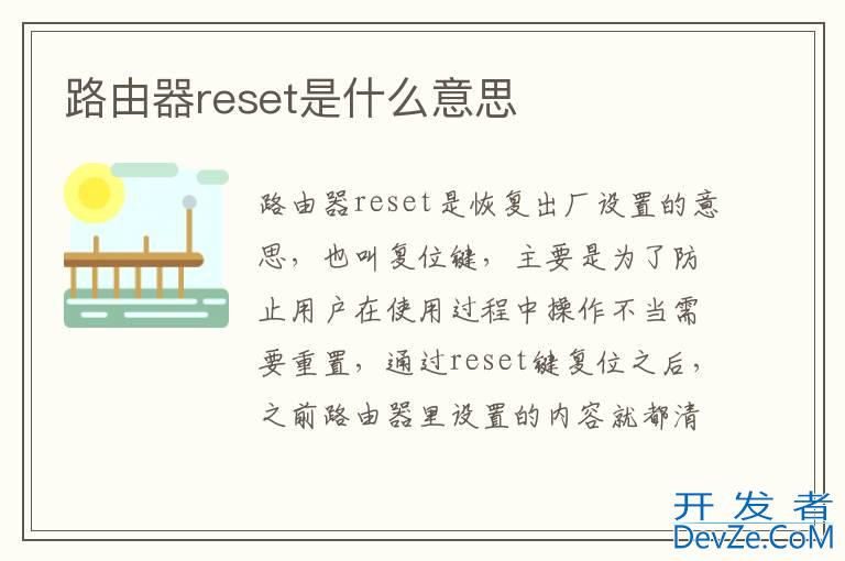 品牌型号:腾达路由器 系统:AC10路由器reset是恢复出厂设置的意思,也叫复位键,主要是为了防止用户在使用过程中操作不当需要重置,通过reset键复位之后,之前路由器里设置的内容就都清除了,恢复到