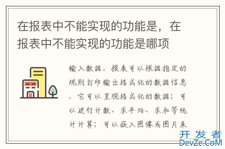 品牌型号:联想拯救者Y9000P 系统:Windows 11开发者_JAVA百科 在报表中不能实现的功能是输入数据。报表可以根据指定的规则打印输出格式化的数据信息。它可以呈现