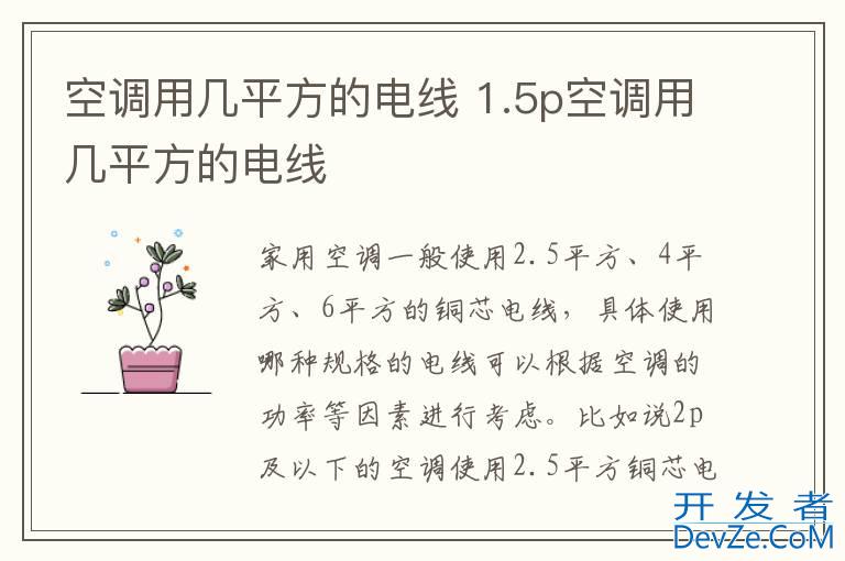 品牌型号:格力空调 系统:KFR-35GW家用空调一般使用2.5平方、4平方、6平方的铜芯电线,具体使用哪种规格的电线可以根据空调的功率等因素进行考虑。比如说2p及以下的空调使用2.5平方铜芯电线,2