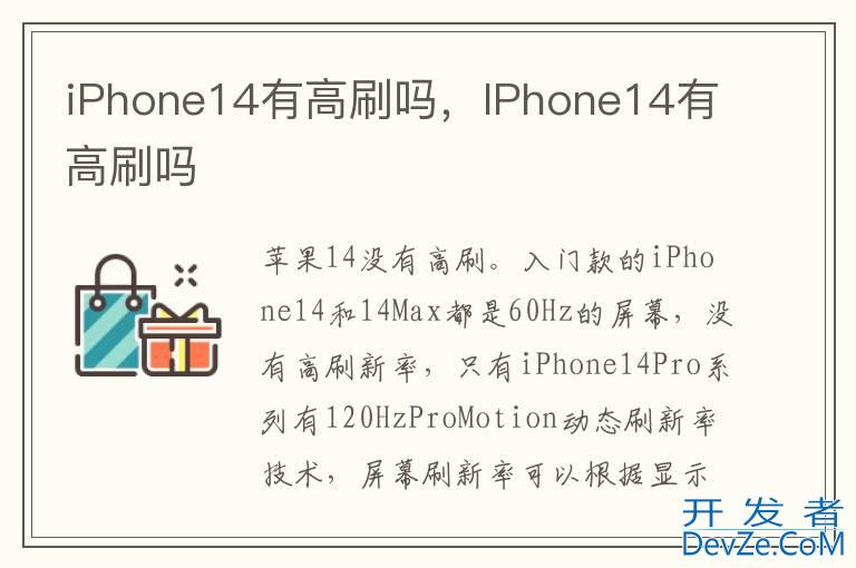 品牌型号:iPhone 14 系统:iOS 16.0iPhone14没有高刷。入门款的iPhone14和14Max都是60Hz的屏幕,没有高刷新率,只有iPhone14Pro系列有120HzProMo