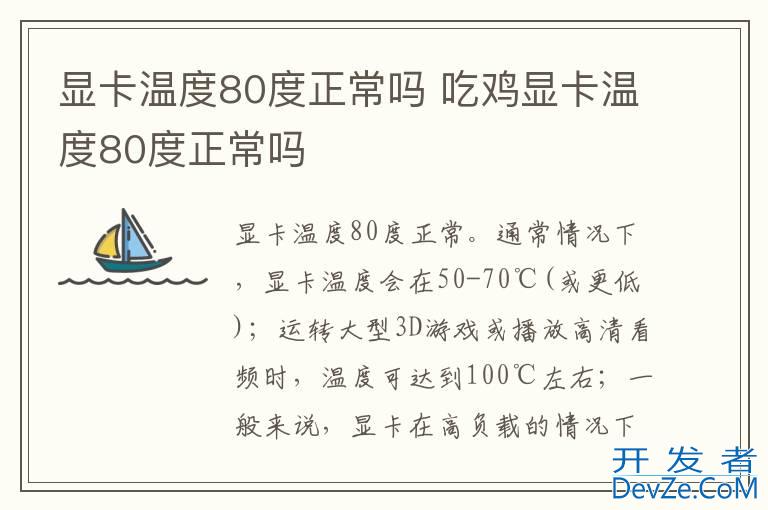 品牌型号:微星显卡 系统:RTX 3060显卡温度80度正常。通常情况下,显卡温度会在50-70℃(或更低);运转大型3D游戏或播放高清看频时,温度可达到100℃左右;一般来说,显卡在高负载的情况下,
