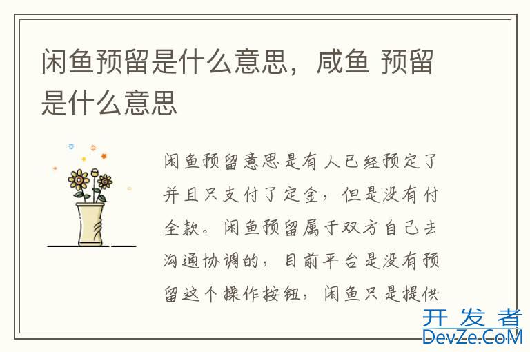 品牌型号:iPhone13 pro pro 系统:IOS15.5 软件版本:闲鱼7.6.10闲鱼预留意思是有人已经预定了并且只支付了定金,但是没有付全款。闲鱼预留属于双方自己去沟通协调的,目前平台是没