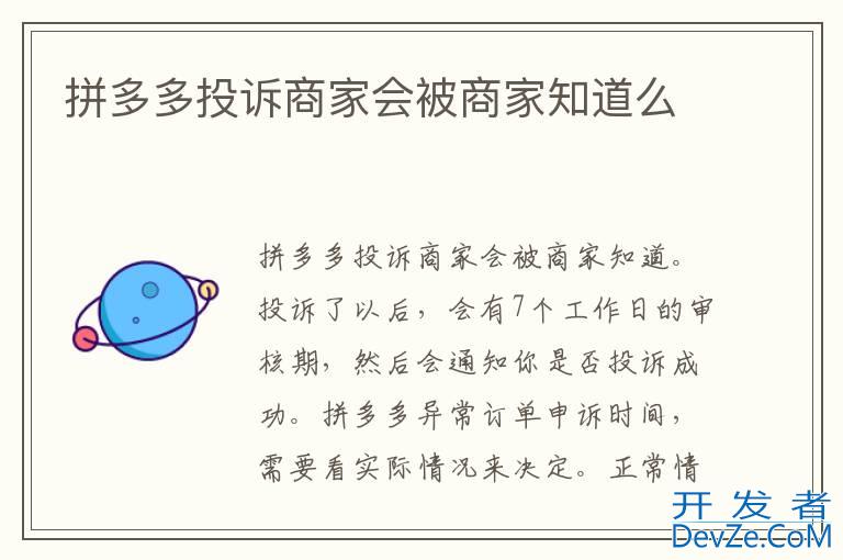 品牌型号:iPhone13 pro pro 系统:IOS15.5 软件版本:拼多多6.19.0 拼多多投诉商家会被商家知道。投诉了以后,会有7个工作日的审核期,然后会通知你是否投诉成功。拼多多异常订单