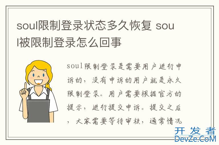 品牌型号:iPhone13 pro pro 系统:IOS15.5 软件版本:soul4.39.0soul限制登录是需要用户进行申诉的,没有申诉的用户就是永久限制登录。用户需要根据官方的提示,进行提交申