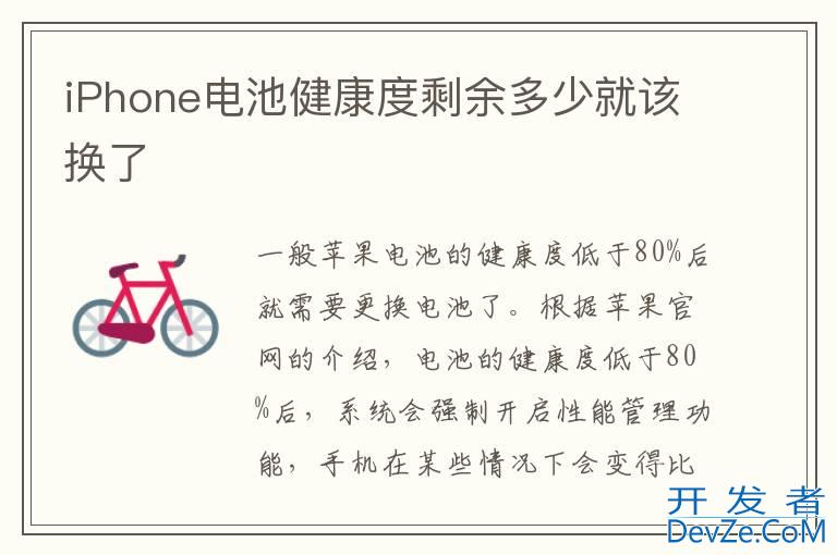 品牌型号:iPhone13 pro pro 系统:IOS15.5一般iPhone电池的健康度低于80%后就需要更换电池了开发者_高级运维。根据iPhone官网的介绍,电池的健康度低于80%后,系统会强
