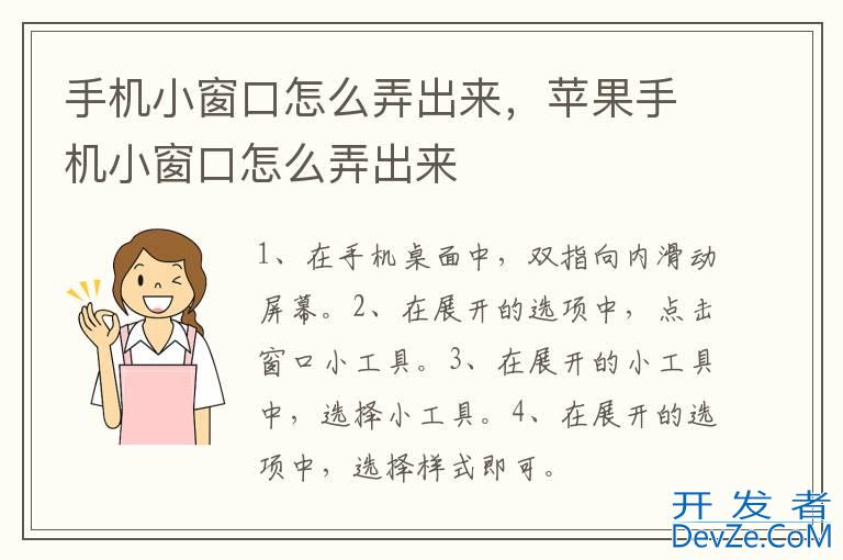 品牌型号:华为p40 系统:HarmonyOS 2.0.0开发者_开发问答手机弄出来小窗口需要在手机窗口小工具中,选择小工具即可。以手机华为p40为例,手机弄出来小窗口的步骤分为4步,具体操作如下:1